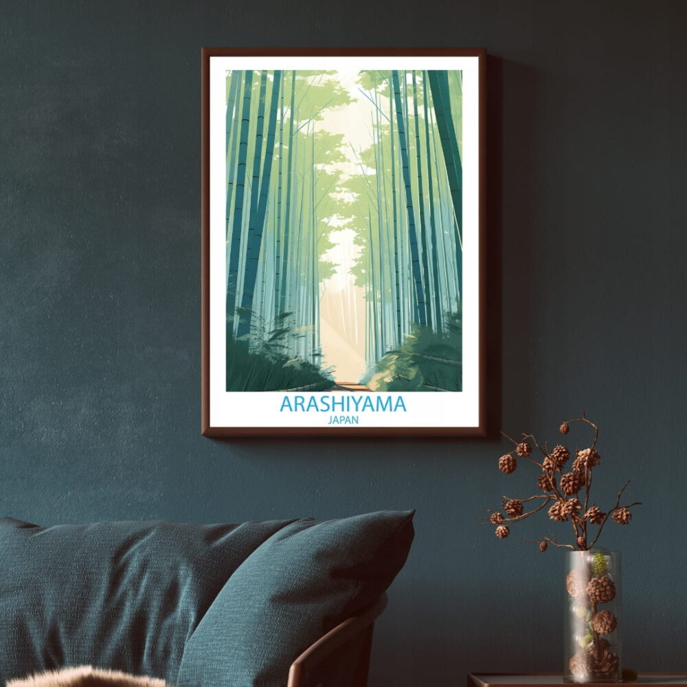 Plakat Bambusowy las Arashiyama Japonia to elegancka dekoracja ścienna, która wniesie do Twojego wnętrza niepowtarzalny klimat. Wykonany z najwyższą dbałością o detale, łączy artystyczny design z profesjonalną jakością druku.