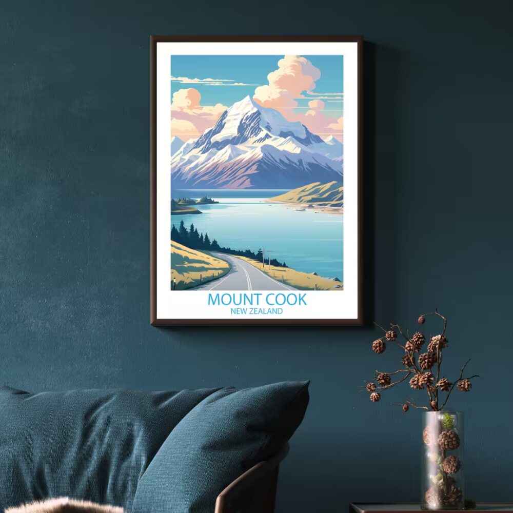 Plakat Góra Cooka Nowa Zelandia to elegancka dekoracja ścienna, która wniesie do Twojego wnętrza niepowtarzalny klimat. Wykonany z najwyższą dbałością o detale, łączy artystyczny design z profesjonalną jakością druku.