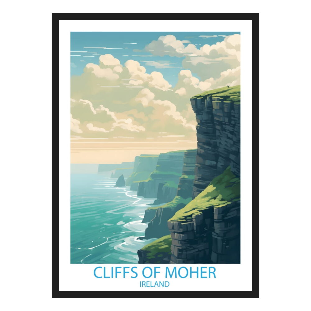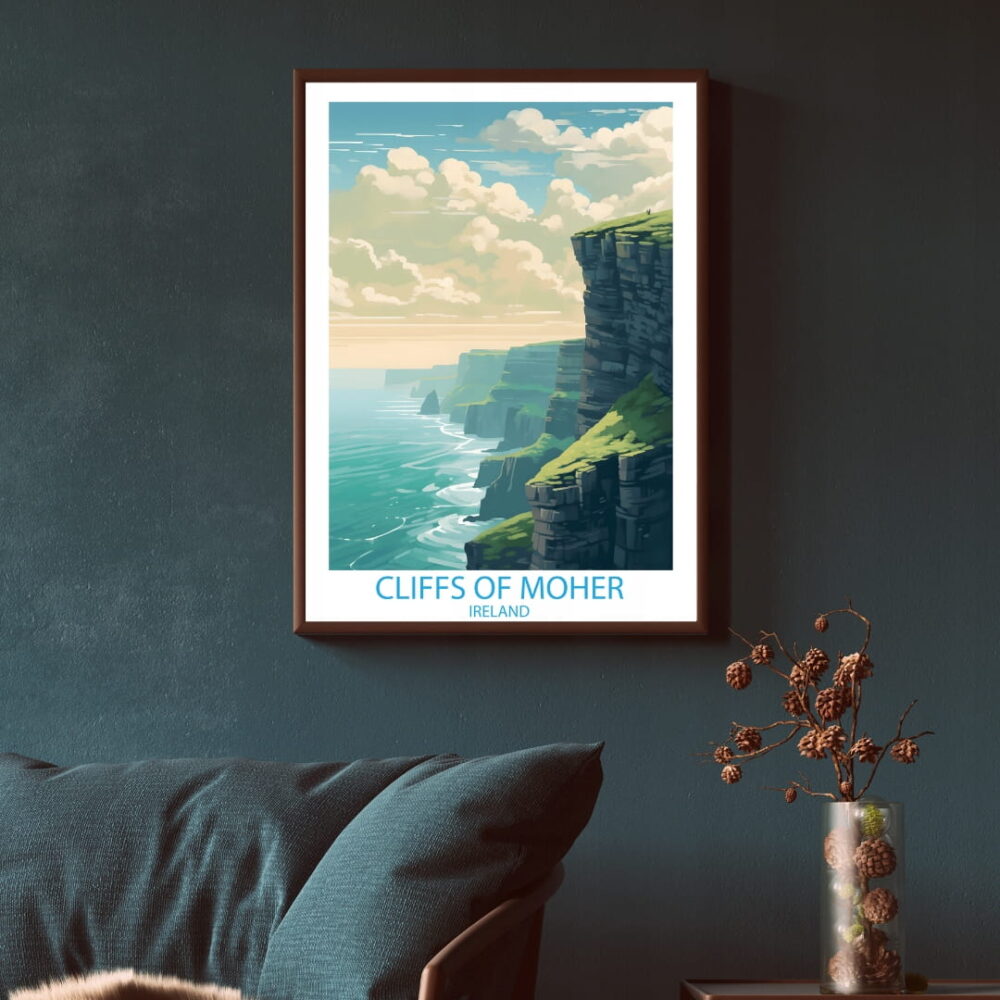 Plakat Klify Moheru Irlandia dla miłośników podróży. Profesjonalny wydruk, papier 200g/m². Dostępne rozmiary: 30×40, 40×50, 50×70 cm. Gotowy do oprawienia.