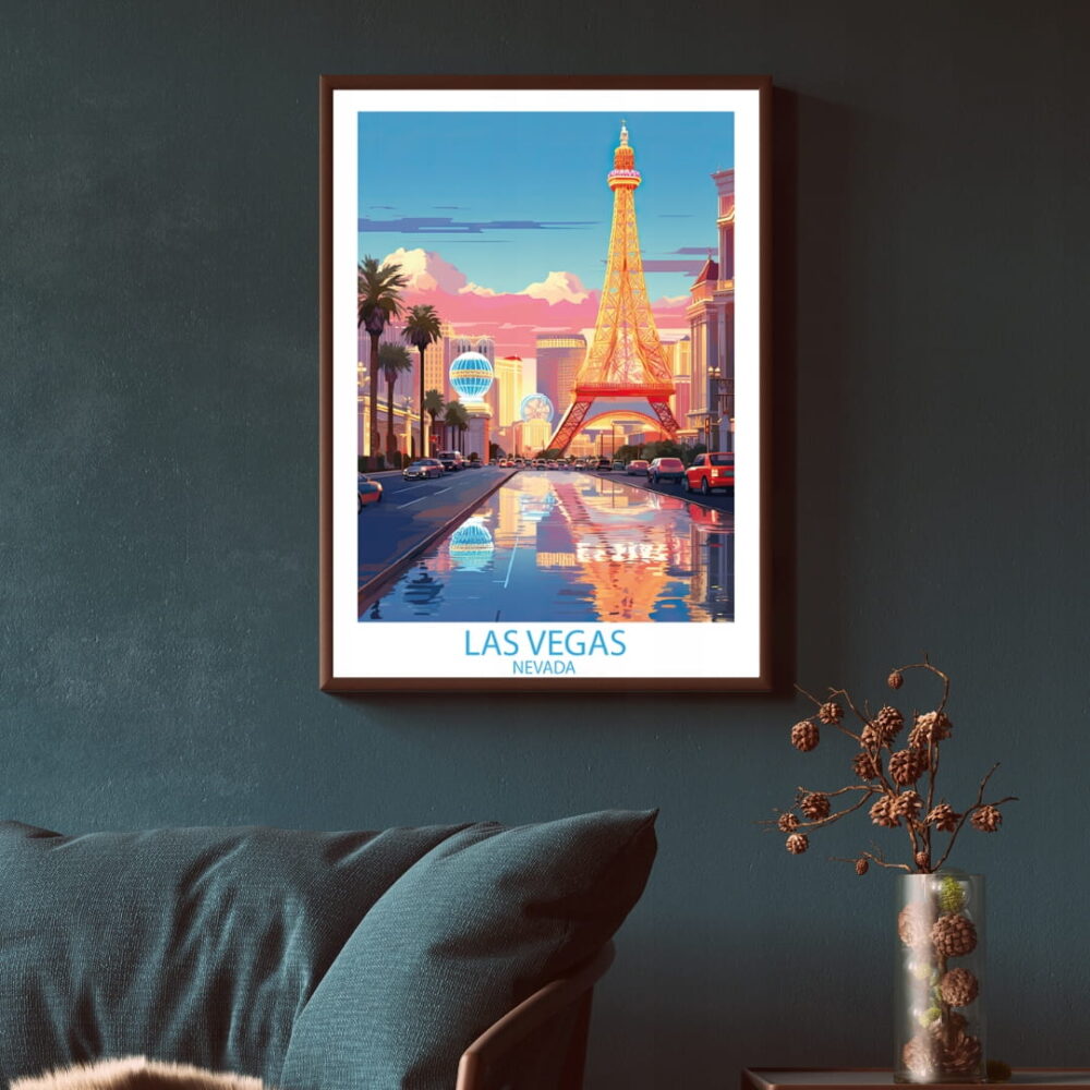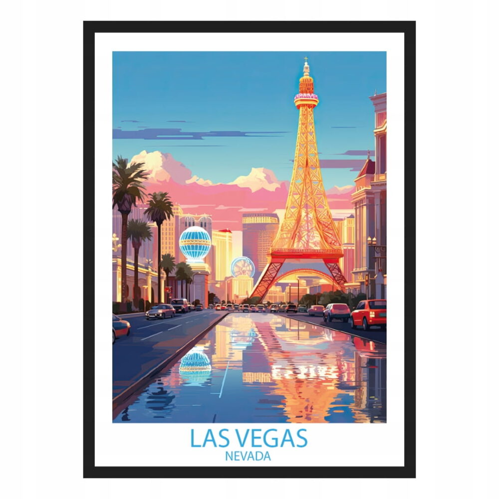 Plakat Las Vegas Nevada USA Stany Zjednoczone to elegancka dekoracja ścienna, która wniesie do Twojego wnętrza niepowtarzalny klimat. Wykonany z najwyższą dbałością o detale, łączy artystyczny design z profesjonalną jakością druku.