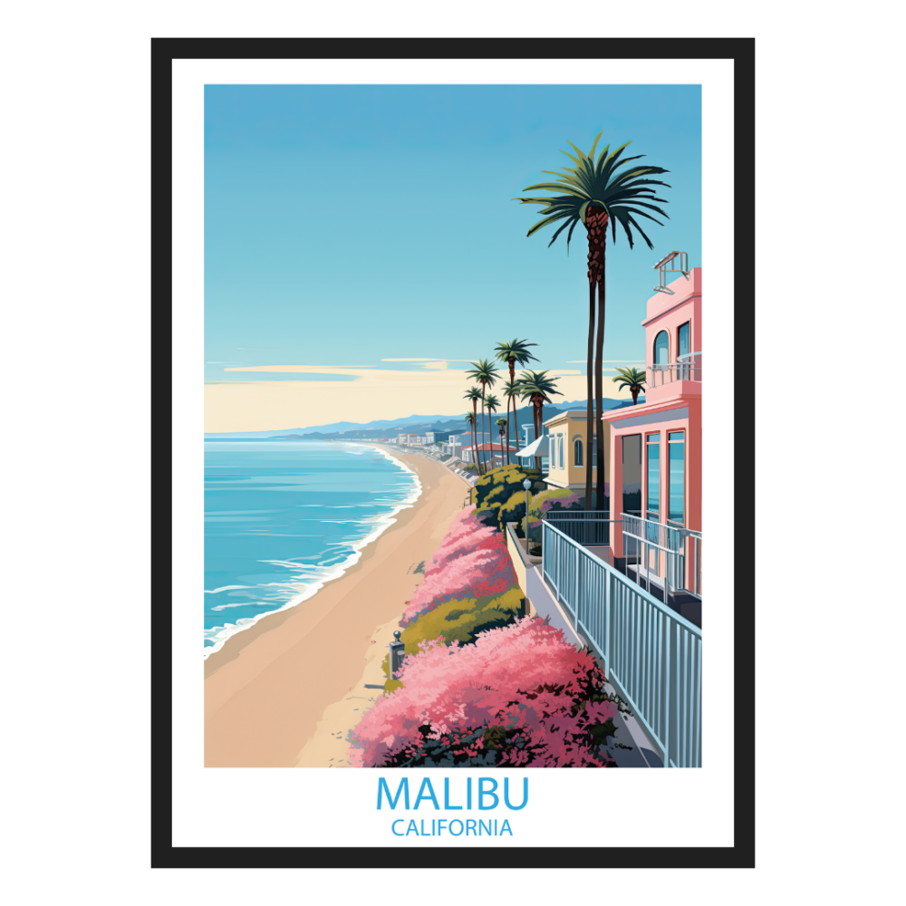 Plakat Malibu Kalifornia 1 USA Stany Zjednoczone – dekoracja premium. Profesjonalny wydruk, trwały papier 200g/m². Rozmiary: 30×40, 40×50, 50×70 cm. Ekspresowa.