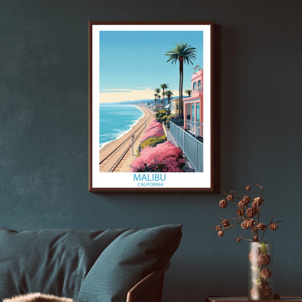 Plakat Malibu Kalifornia 1 USA Stany Zjednoczone to elegancka dekoracja ścienna, która wniesie do Twojego wnętrza niepowtarzalny klimat. Wykonany z najwyższą dbałością o detale, łączy artystyczny design z profesjonalną jakością druku.