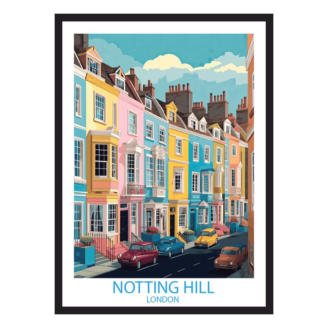 Plakat Notting Hill – Londyn Anglia Wielka Brytania to elegancka dekoracja ścienna, która wniesie do Twojego wnętrza niepowtarzalny klimat. Wykonany z najwyższą dbałością o detale, łączy artystyczny design z profesjonalną jakością druku.