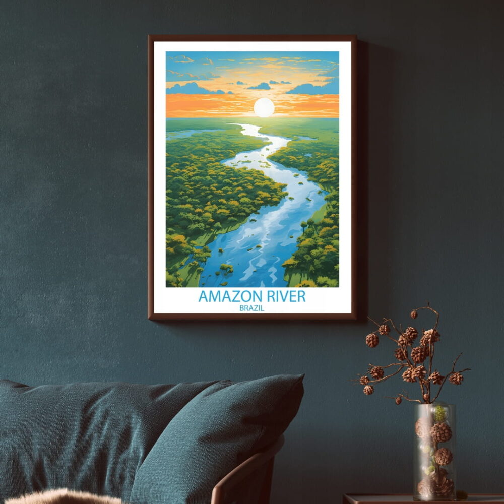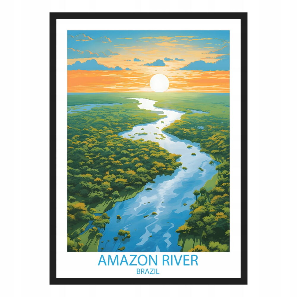 Plakat Rzeka Amazonka Brazylia to elegancka dekoracja ścienna, która wniesie do Twojego wnętrza niepowtarzalny klimat. Wykonany z najwyższą dbałością o detale, łączy artystyczny design z profesjonalną jakością druku.