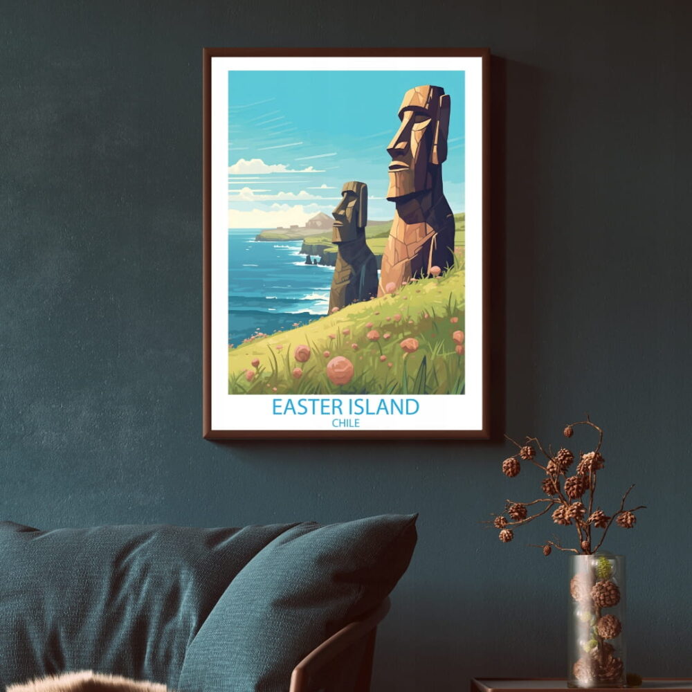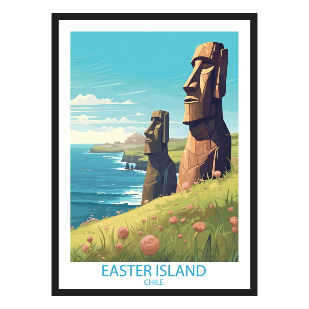 Plakat Wyspa Wielkanocna Chile do salonu, sypialni lub biura. Premium papier 200g, matowe wykończenie. Dostępne formaty: 30×40, 40×50, 50×70 cm. Polska.